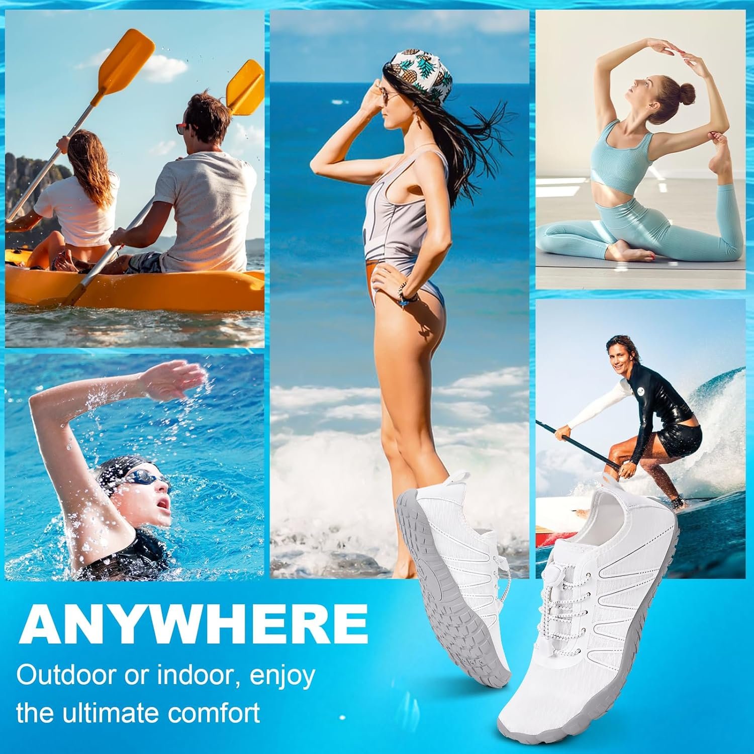 Natural Strength: Ultra-thin soles and wide toes strengthen feet, mimicking barefoot movement. Breathable & Quick-Dry: Slip-on mesh keeps feet cool, even post-swim or in summer rain. Drains Instantly: Water channels shed weight, so you stride freely through waves or mud. Tough Yet Light: Flexible soles guard against rocks without sacrificing ground feel.